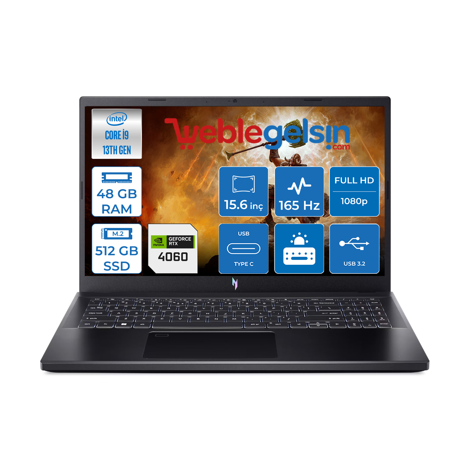 Acer Nitro 5 ANV15-51 V15 Ntel Core I9-13900H 48GB DDR5 512GB SSD 8GB/RTX4060 Freedos 15.6'' 165Hz Fhd Taşınabilir Bilgisayar NHQQEEY00509 (NHQQEEY00509)