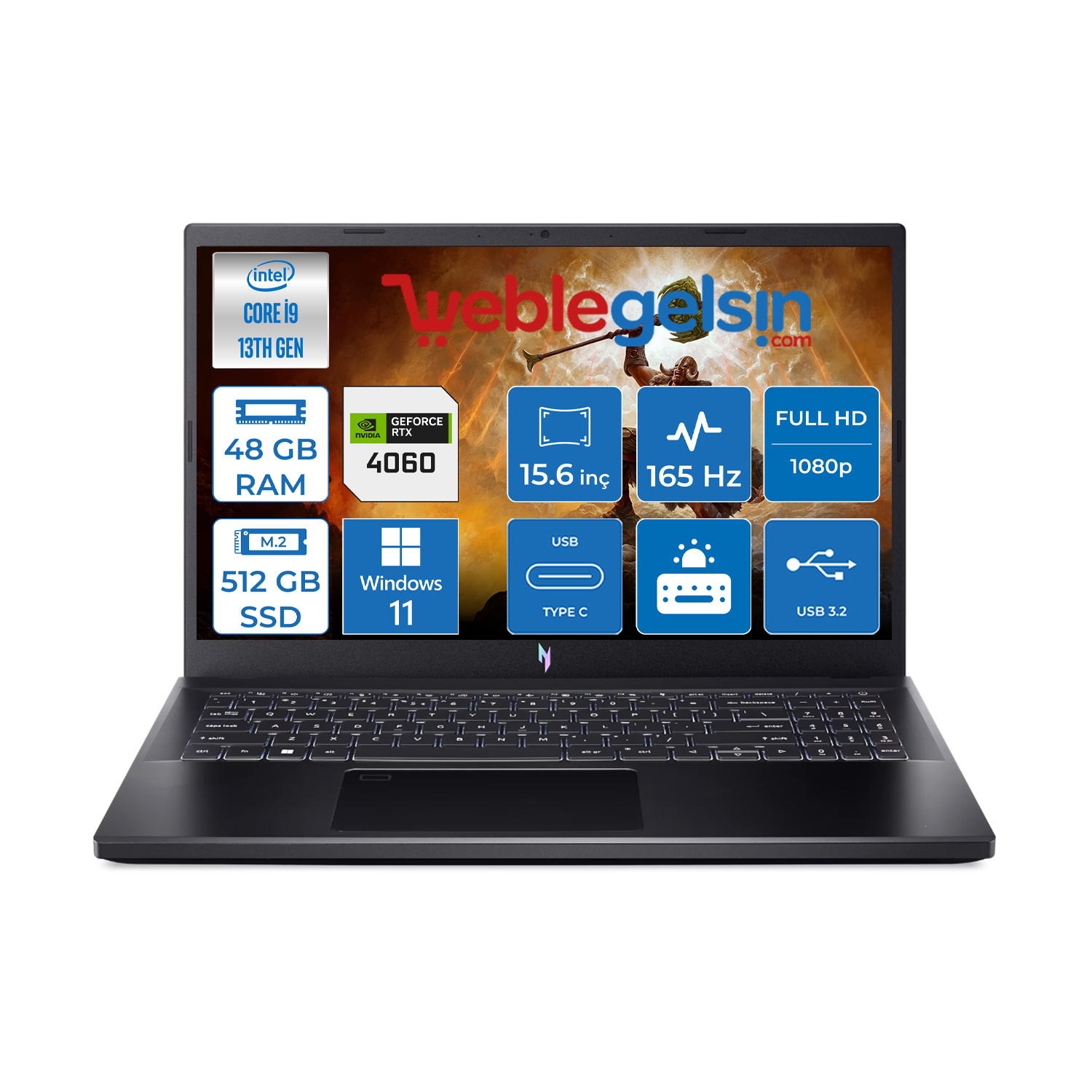 Acer Nitro 5 ANV15-51 V15 Ntel Core I9-13900H 48GB DDR5 512GB SSD 8GB/RTX4060 Windows 11 Home 15.6'' 165Hz Fhd Taşınabilir Bilgisayar NHQQEEY00529 (NHQQEEY00529)