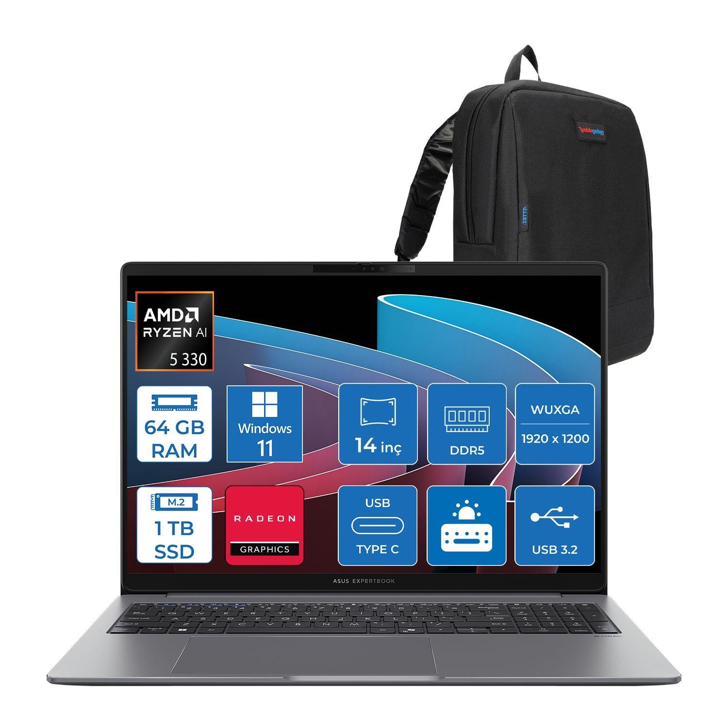 Asus Expertbook P3 PM3406CKA Ryzen Aı 5-330 64GB DDR5 1TB SSD Radeon 820M 14.0-Inch, Wuxga (1920 x 1200) 300NITS Windows 11 Pro Taşınabilir Bilgisayar PM3406CKA5P18