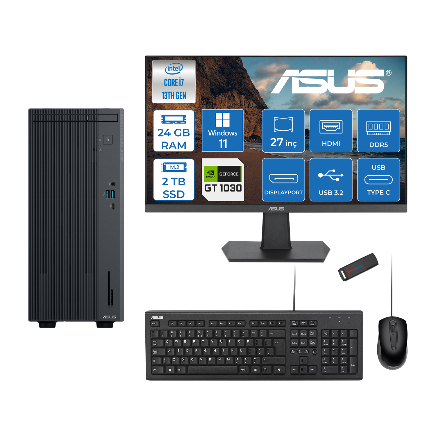 Asus Expertcenter P500MV Intel Core I7-13620H 24GB DDR5 2TB SSD Windows 11 Pro 6GB/RTX3050 100HZ IPS 27'' Mon Minitower Masaüstü bilgisayar WM7136216512B0DW09 (MI71013179)