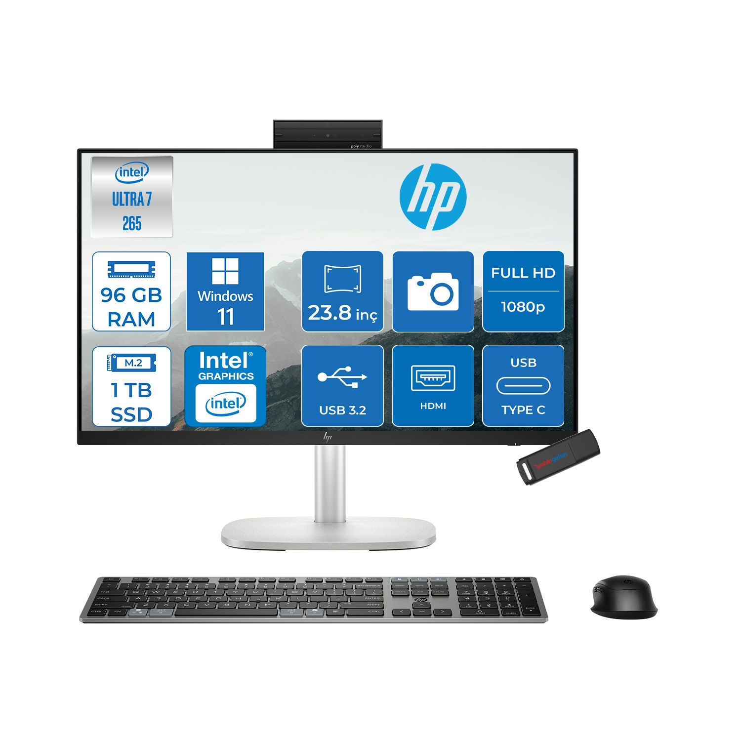 Hp Elitestudio 8 G1I Intel Core Ultra 7 265 5.3 Ghz 96GB DDR5 1TB SSD Intel Aı Boost Windows 11 Pro 23.8'' Dokunmatik Fhd (1920 x 1080) IPS All In One Bilgisayar HPCS7D3ETP44 (HPCS7D3ETP44)
