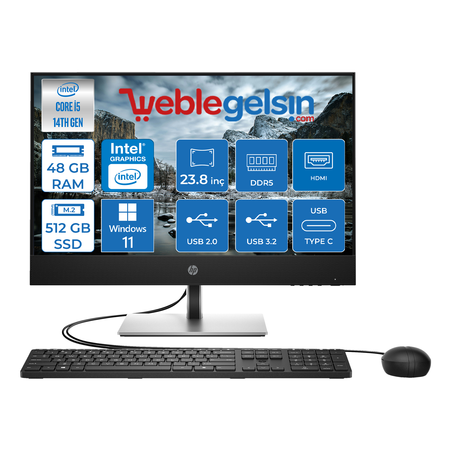 Hp Proone 440 G9 14.nesil Intel® Core I5 14500T 48GB DDR5 512GB SSD Fhd 23.8