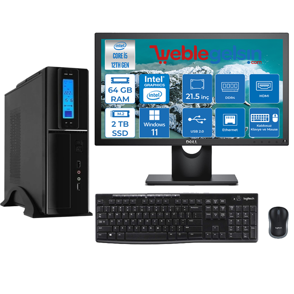 Zetta Flex Sff Intel Core i5 12400 64GB 2TB SSD Windows 11 Pro 21.5" FHD Masaüstü Bilgisayar ZET22270