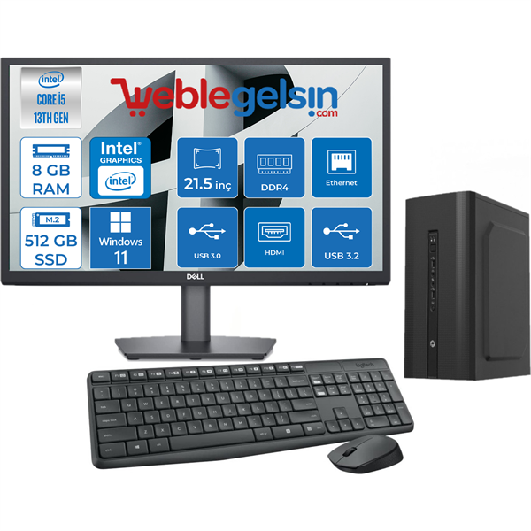 Zetta Pro 250X Intel Core i5 13400 8GB 512GB M.2 SSD 21.5" Monitör Windows 11 Home Masaüstü Bilgisayar X164318